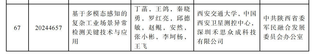 喜讯丨禾思获奖发表时间:2025-07-10 17:13 禾思获奖 近日,2024 年度陕西省科学技术奖通过专业会议评审通用项目(人选)名单揭晓,公司联合创始人罗红亮博士与西安交通大学、中国西安卫星测控中心多名优秀人才联合组队,凭借 “基于多模态感知的复杂工业场景异常检测关键技术与应用” 项目,荣获 陕西省科学技术进步奖二等奖 ,以硬核科研实力为公司创新发展再添重磅成果! 聚焦工业痛点 多模态感知破局 在复杂工业场景中,设备故障、流程异常往往隐蔽难察,传统检测手段难以高效识别风险。罗红亮博士团队深耕多模态感知技术,融合视觉、传感、数据建模等多维度能力,构建精准异常检测体系 —— 从设备运行状态实时监测,到潜在故障智能预警,为工业生产装上 “智能哨兵”,大幅提升产线稳定性与安全性,助力企业降本增效。 产学研协同 攻坚核心技术 此次获奖,是团队产学研深度协同的成果。罗红亮博士团队携手西安交通大学、中国西安卫星测控中心等机构,整合高校科研智慧、航天级技术经验与企业场景落地能力,突破 多模态数据融合、复杂场景模型训练 等关键技术,让科研成果真正扎根工业一线,实现从 “实验室” 到 “应用场” 的高效转化。 联合创始人担当 赋能公司创新 作为公司联合创始人,罗红亮博士始终以科研创新驱动企业发展。此次获奖,不仅彰显其个人在工业智能领域的深厚积淀,更体现公司 “以技术创新为核心” 的发展战略。依托该项目技术,公司将进一步拓展工业智能解决方案边界,为更多行业客户提供精准、高效的异常检测服务,助力工业数字化转型加速升级。 荣誉再启新程 科技赋能未来 这份省级科技进步奖,是对团队科研实力的高度肯定,更是公司创新发展的有力见证。未来,公司将以罗红亮博士团队为标杆,持续加大科研投入,深化产学研协同,让更多 “硬核科技” 落地应用,为工业智能化发展注入 “禾思力量”,用创新成果书写更多科技赋能产业的精彩篇章! 获奖公示链接:https://kjt.shaanxi.gov.cn/kjdt/tzgg/202505/t20250513_3517898.html ![]() ![]()